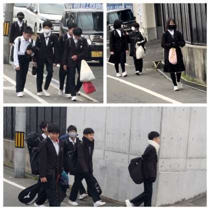 写真は朝の登校の様子です。