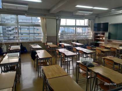 写真は今朝の2年生の教室です。廊下の窓を通して撮影しました。環境整備は大切です。