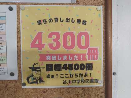 図書貸し出し冊数の目標は4500冊。先日、4200冊を越えたことを紹介しましたが、4300冊に達したようです。年度末が近づくこの時期に目標まであとわずかになる、4500冊という目標設定は絶妙でしたね。