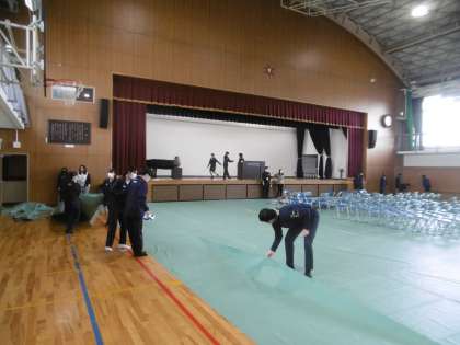 3年生が後輩たちのために、明日の入学式準備を一生懸命にしていました。隅々まで掃除をしている姿に関心しました。さすが、本校の最上級生です。