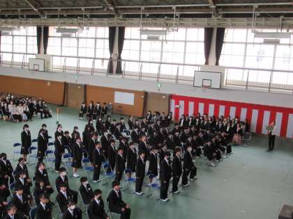 本日午後2時より、本校体育館にて第47回入学式が行われました。94名の新入生の中学校生活のスタートです。47期生は緊張しながらも、立派な態度で入学式に臨むことができました。