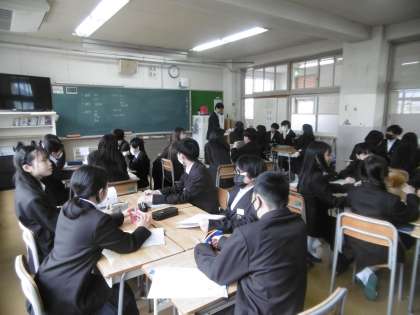 各クラスで清掃分担を決めていました。本校では仲間づくり(集団づくり)をより一層推進するために、物事を決めるときには安易にじゃんけんをするのではなく、常に話し合いをもつようにしています。写真は上から、1年1組、1年2組、1年3組です。