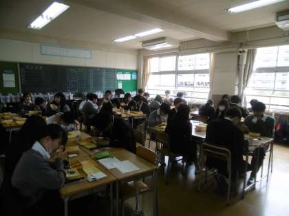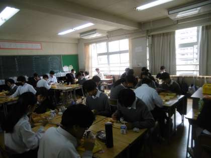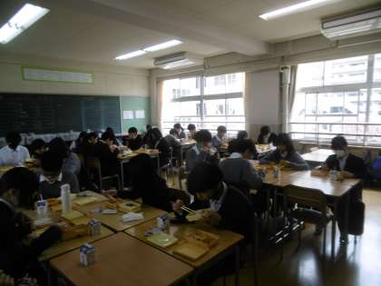 写真は上から、3年1組、3年2組、3年3組です。黙食をする必要はなくなりましたが、3年生はどのクラスも静かに給食を食べていました。明日は2年生の給食時の様子をお伝えする予定です。