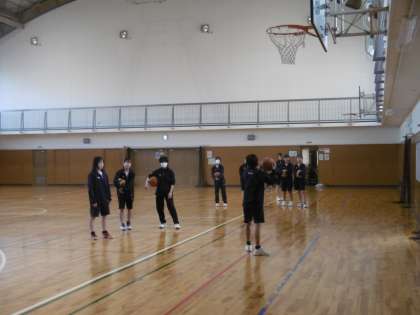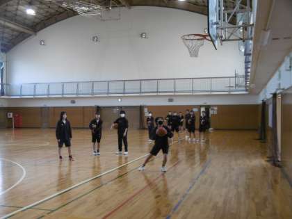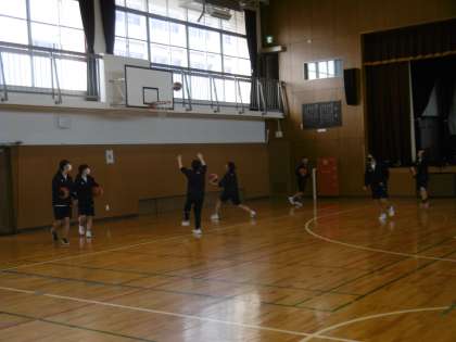 明日の公式戦に向けて、女子バスケットボール部が朝練をしていました。明日は春季北河内大会の1、2回戦が予定されています。女子バスケットボール部の健闘を祈ります。