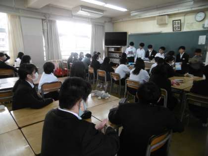 写真は2年3組です。1日の振り返り(授業態度や清掃活動、チャイム着席など)を行う中でよくがんばれた点について、温かい拍手がそれぞれの班に向けてされていました。とてもいい雰囲気の中での終学活でした。