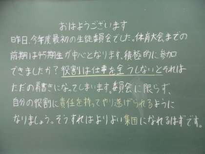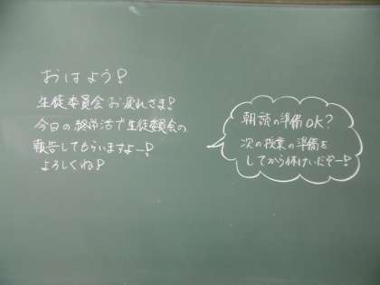 写真は上から、1年1組、3年2組です。担任の先生から温かい黒板メッセージが書かれていました。
