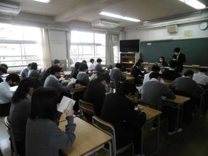 写真は上から、1年1組、2年3組、3年1組です。教室にいる担任の先生も生徒と一緒に本を読んでいました。