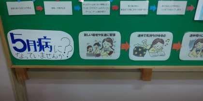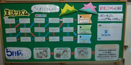 毎月、本校の養護教諭が保健室の掲示物を新しいものにしています。今月は「五月病」についてでした。新学期が始まって1ヶ月。生徒の疲れも出てくるころです。規則正しい生活とバランスのよい食事、しっかりとした睡眠を心がけましょう。気になることがあれば、遠慮なく担任や学年の先生、または保健室の先生に相談しましょう。