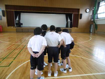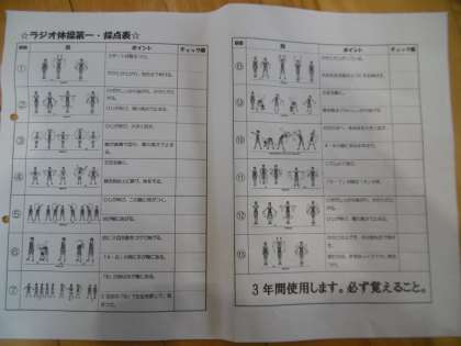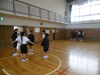 グループごとに分かれて、配付された学習プリントをもとにラジオ体操の練習を行っていました。みんなで出すかけ声は校舎まで聞こえていました。どのグループにも指示を出すリーダーがいて、1年生が頼もしく見えました。
