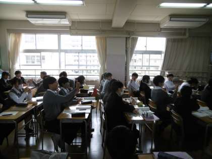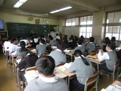 授業のめあては「個体が何から作られているのかを説明できる」でした。教科担当の先生の質問に一生懸命に生徒は答えていました。