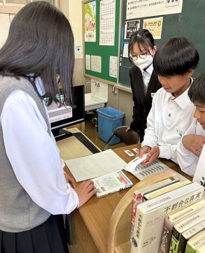 お昼休みは、図書委員さんが貸し出し手続きをします。