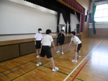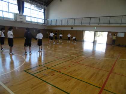 学習内容は「ラジオ体操」でした。グループごとに分かれて、学習プリントを使って、ラジオ体操の習得に向けて、一生懸命に練習をしていました。今日も元気な声が体育館中に響いていました。