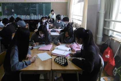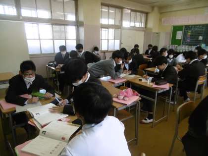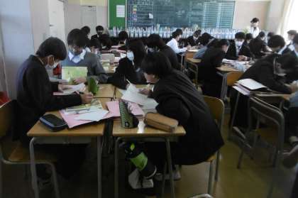 学習プリントの課題解決のために、4人班での学習活動(学び合い)が取り入れられていました。分からないことを自然に聞くことができる環境や教室の雰囲気がとてもよかったです。