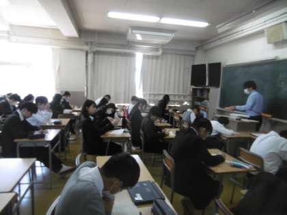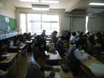周期表のテストが行われていました。本当に静かな教室で、生徒は集中してテストを受けていました。