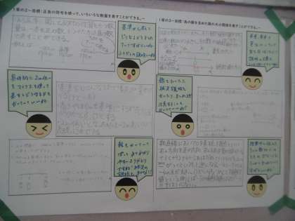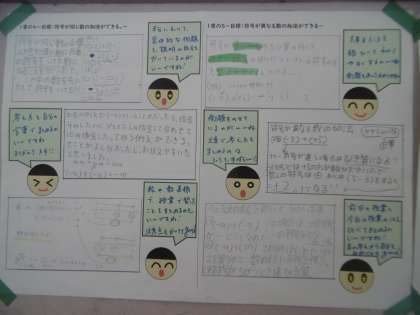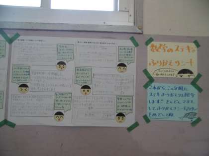 数学の授業で取り組んだ「振り返りシート」が掲示されていました。教科担当の先生のコメントもすべての用紙に記載されていました。5月20日(月)〜24日(金)まで、学校公開週間です。来校時に是非、ご覧ください。