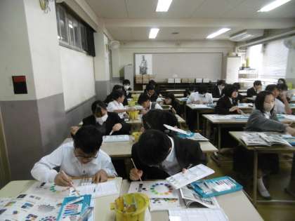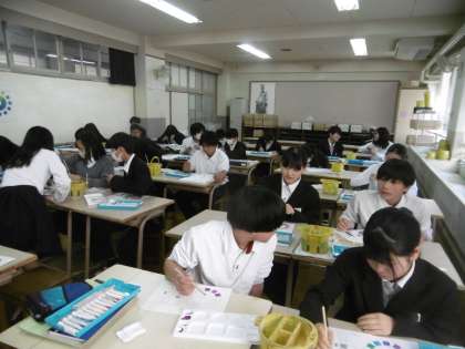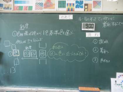 今日も美術室の黒板には、授業のめあてと流れがしっかりと書かれていたので、生徒は作業に入りやすく、課題に集中して取り組んでいました。