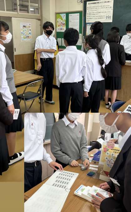 図書委員さんがカウンターで忙しくお仕事してしています。