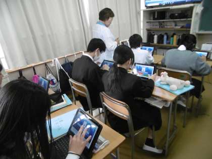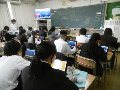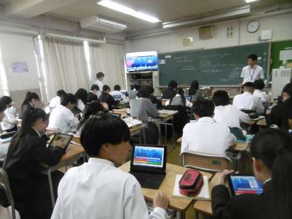 インターネット教材を利用して、単元テストに向けたクイズドリルをしていました。とてもよく作られた教材に生徒は大喜びでした。授業は大いに盛りあがっていました。