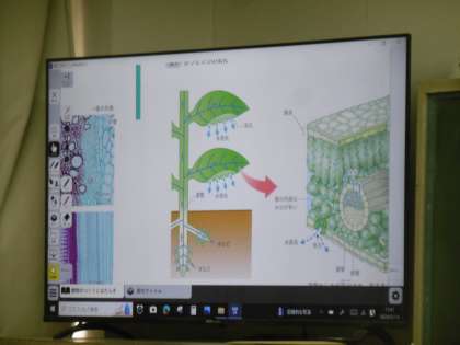 授業のめあては「蒸散及び単子葉類と双子葉類の維管束の特徴を説明できる」でした。