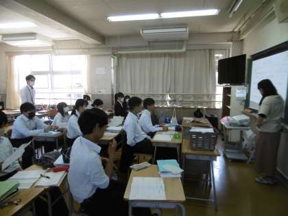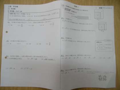 3年生の数学で分割授業が始まりました。2つの教室で2名の教員による授業を行っています。学習単元は「平方根」でした。