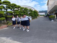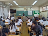 学習内容は「絵から物語をつむぐ」でした。大型テレビに映し出された様々な作品について、学習プリントを使って、教科担当の先生が説明を加えていました。