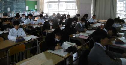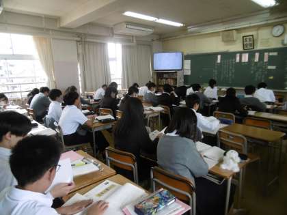 学習教材は「字のない葉書」でした。教科担当の先生が、授業を分かりやすくするための工夫を黒板にたくさん作っていました。