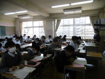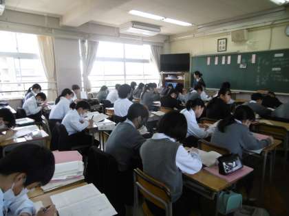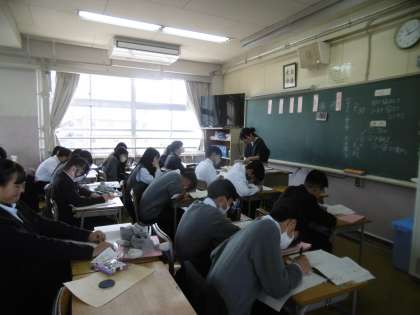 学習教材は「字のない葉書」でした。2年生(46期生)の授業も本当に静かでした。生徒は黙々と教科担当の先生から出された課題をしていました。
