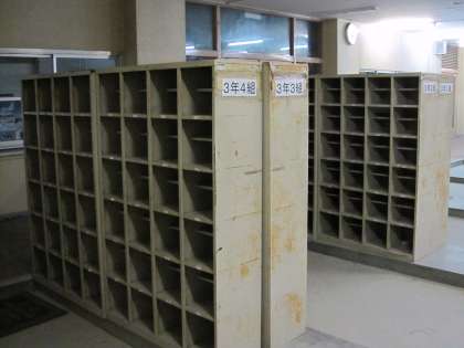 (写真はスッキリしている下足箱。教室整美など先生方も準備万端です。)