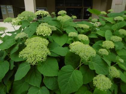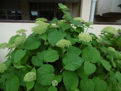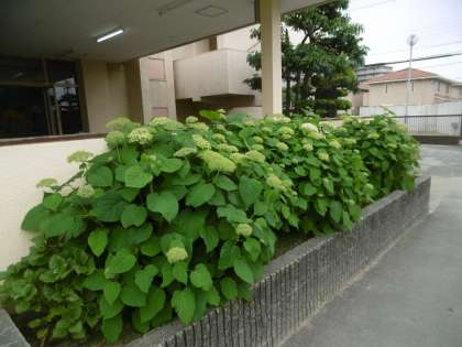 正門前の花壇に植えられているあじさいが間もなく、花を咲かせそうです。本校の教職員が校長に今朝、教えてくれました。楽しみが一つ増えました。
