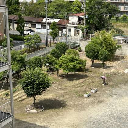 みんなの教室から見えます。さて、どの木がハナミズキでしょうか?