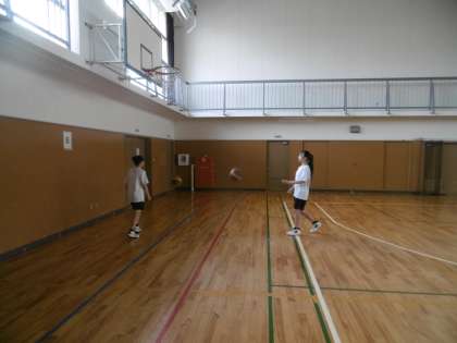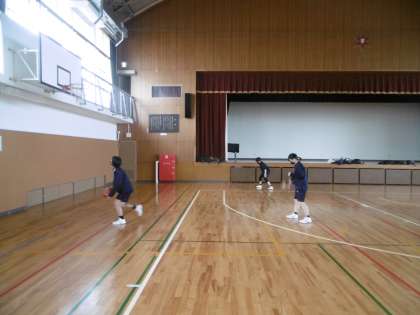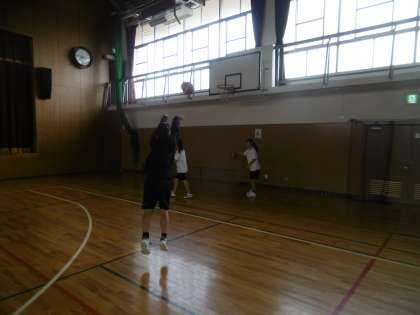 今日も女子バスケットボール部が朝練をがんばっていました。時間を大切にし、1本1本のシュート練習を試合を想定しながら、真剣に練習をしていました。