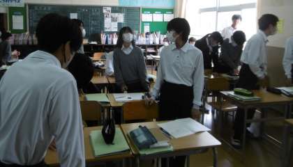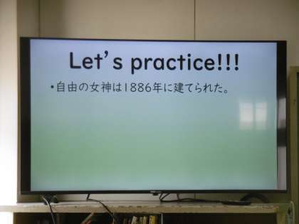 二人一組になり、ペアで先生から指示された英会話文をお互いに発表し合っていました。難易度の高い課題にも挑戦をしていました。