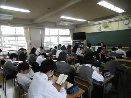 写真は上から、3年3組、2年2組、1年1組の朝の読書の様子です。谷川中学校では朝の読書活動を取り入れ、毎日朝の10分間の静寂をとても大切にしています。
