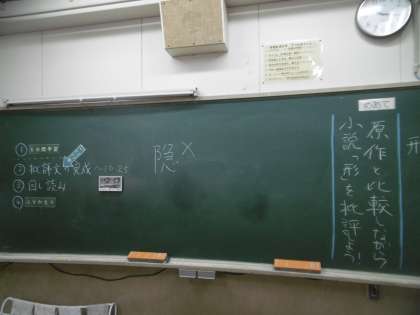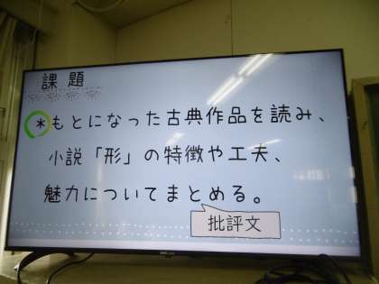学習のめあては「もとになった古典作品を読み、小説「形」の特徴や工夫、魅力についてまとめる」でした。難易度の高い授業に、子どもたちの思考は「常に高速回転」をしていました。
