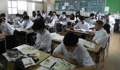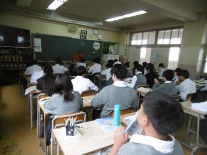 学習のめあては「食物栽培の意義や作物が成長する条件を知る」でした。教科担当の先生の説得力のある説明を生徒は静かによく聞いていました。