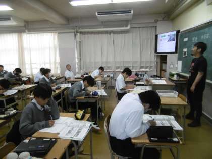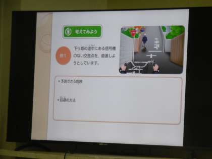 学習内容は「交通事故の危険予測と回避」でした。教科担当の先生が交通事故の具体的な事例を挙げながら、生徒に説明をしていました。