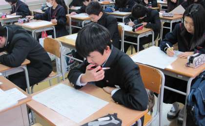 3年生では本日6限目に、私立高校等の願書の下書きをしました。