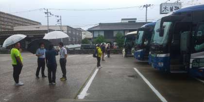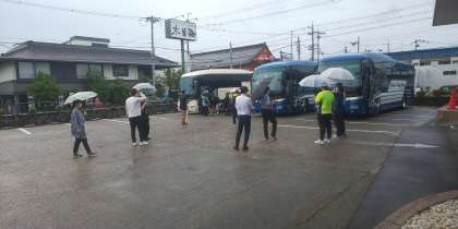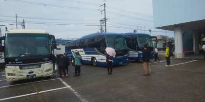 バスに乗車しました。他学年の先生方も朝早くから、見送りに来てくれました。行ってきま〜す!