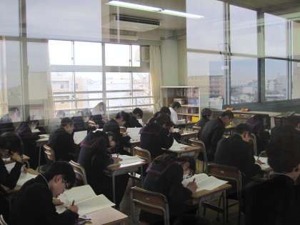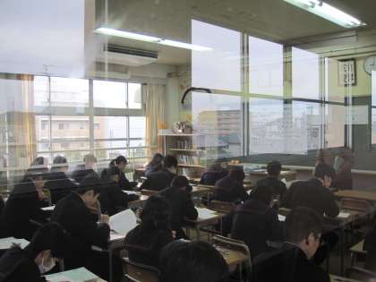 写真は上が1年生、下が2年生の様子です。廊下からの撮影です。