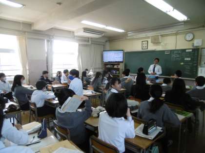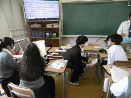 教科担当の先生が上手に授業を盛り上げていました。生徒はペア学習での英会話もしっかりと行っていました。