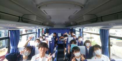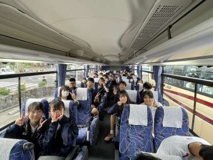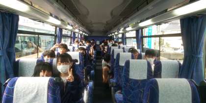 バスが出発しました。これから伊丹空港に向かいます。バスレクがもう始まりました。子どもたちは元気です。