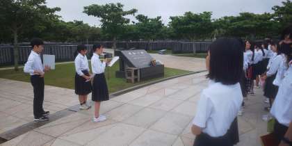 平和セレモニーの様子です。45期生は平和学習を事前にしっかり行っていたので、厳粛な雰囲気の中で平和セレモニーを行うことができていました。命や家族、戦争について、何か感じ取ってくれたのではないでしょうか。平和の誓いは本当に見事でした。