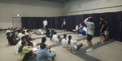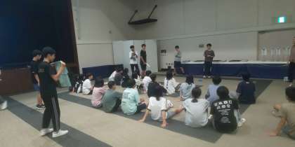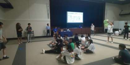 クラス対抗ジェスチャーゲームが始まりました。担任の先生と代表生徒による対抗戦です。優勝は2組でした。
