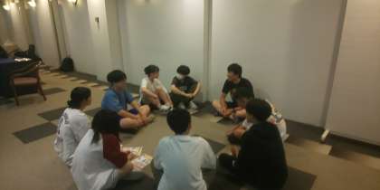 班長会議が各クラスごとに行われています。今日一日の振り返りと明日の民泊体験についての連絡をしています。みんな実にいい表情をしています。きっと今日の修学旅行一日目がどのクラスも満足できるものだったからに違いありません。今回の修学旅行を支えているのは、ここにいる24人です。明日もよろしくお願いします! 写真は上から1組、2組、3組です。