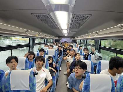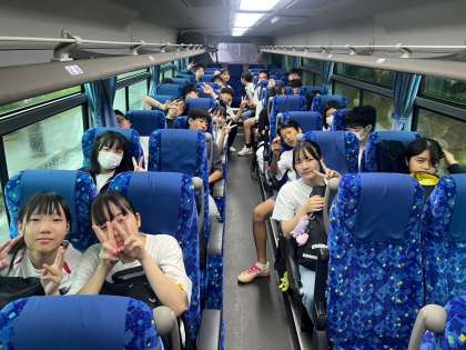バスレクが始まりました。素敵なCD音楽の中に、沖縄に関するたくさんの曲も用意されていて、レクレーション係のがんばりを感じました。写真は上から、1組、2組、3組です。子どもたちは元気です。