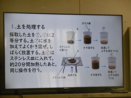 学習内容は「生物と外界の関係」、授業のめあては「土の中の生物がどのようなはたらきをしているかを知り、説明することができる」でした。3年生はどのクラスもいつも授業は静かです。