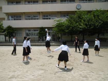 今日の昼休みの様子です。暑かったですが、子どもたちは元気に遊んでいました。先生も生徒と一緒にバレーボールを楽しんでいました。