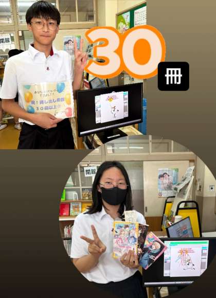 本日の昼休みに、貸し出し冊数30冊を2人が突破しました!
