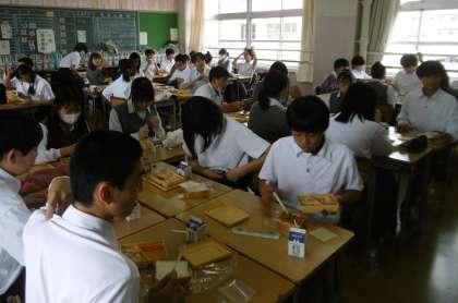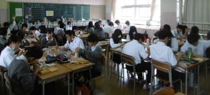 写真は上から、2年1組、2年2組、2年3組です。余った給食をみんなで仲良く分けていました。46期生は仲の良い学年です。