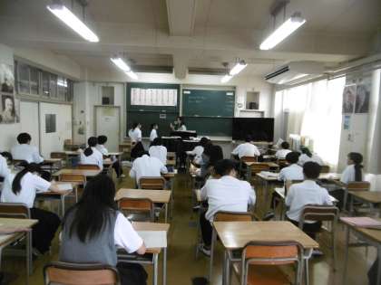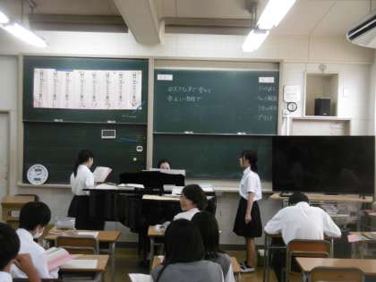 音楽室で歌のテストをしていました。出席番号順に二人一組になり、先生のピアノ伴奏に合わせながら、生徒は一生懸命に歌を歌っていました。